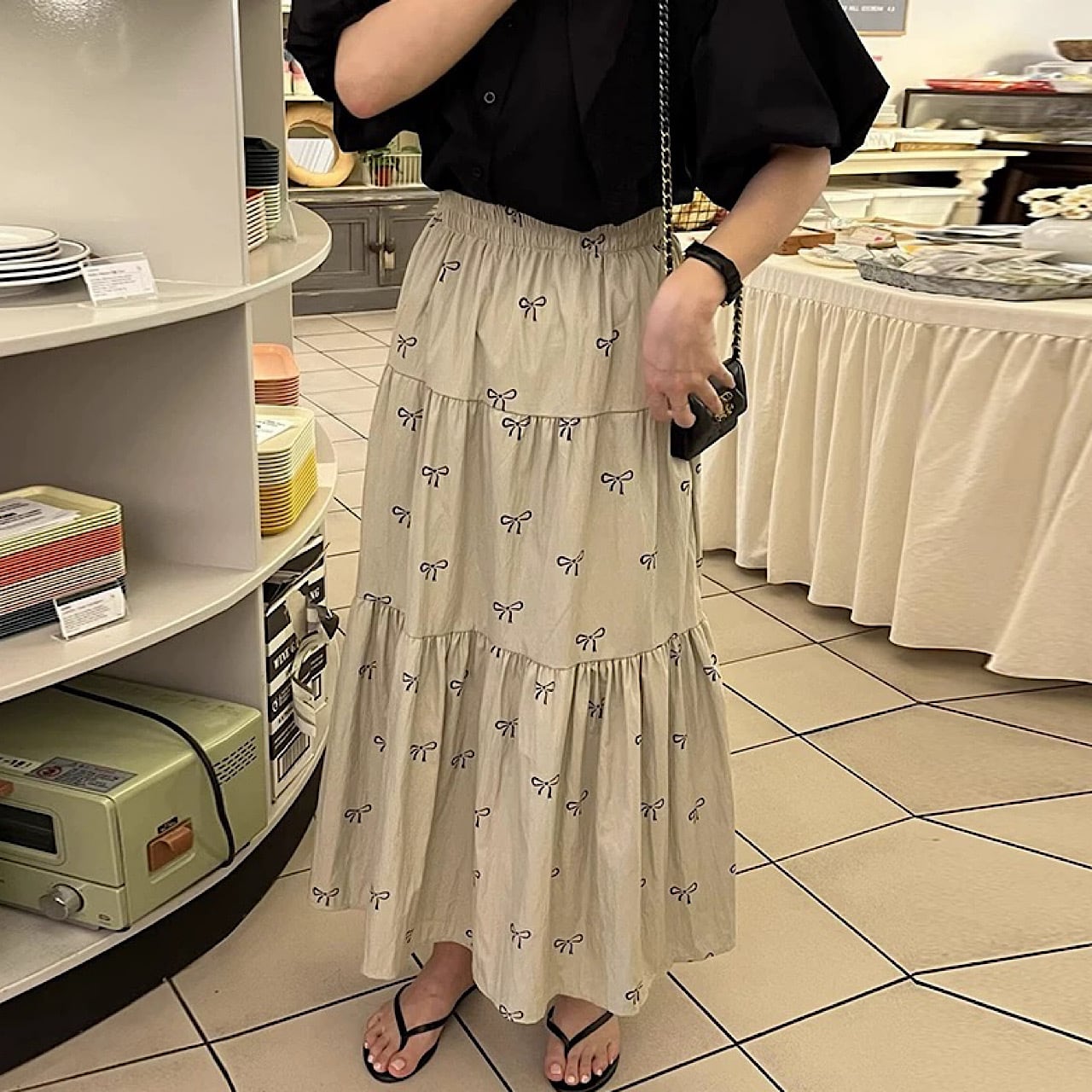 【ワンサイズ】ティアードりぼん柄スカート
