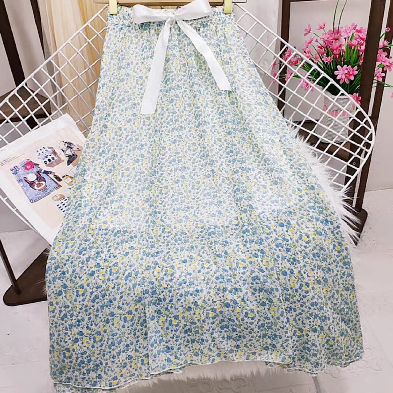 細かい柄にキレイ色のスカートなのでとても華やかになります。