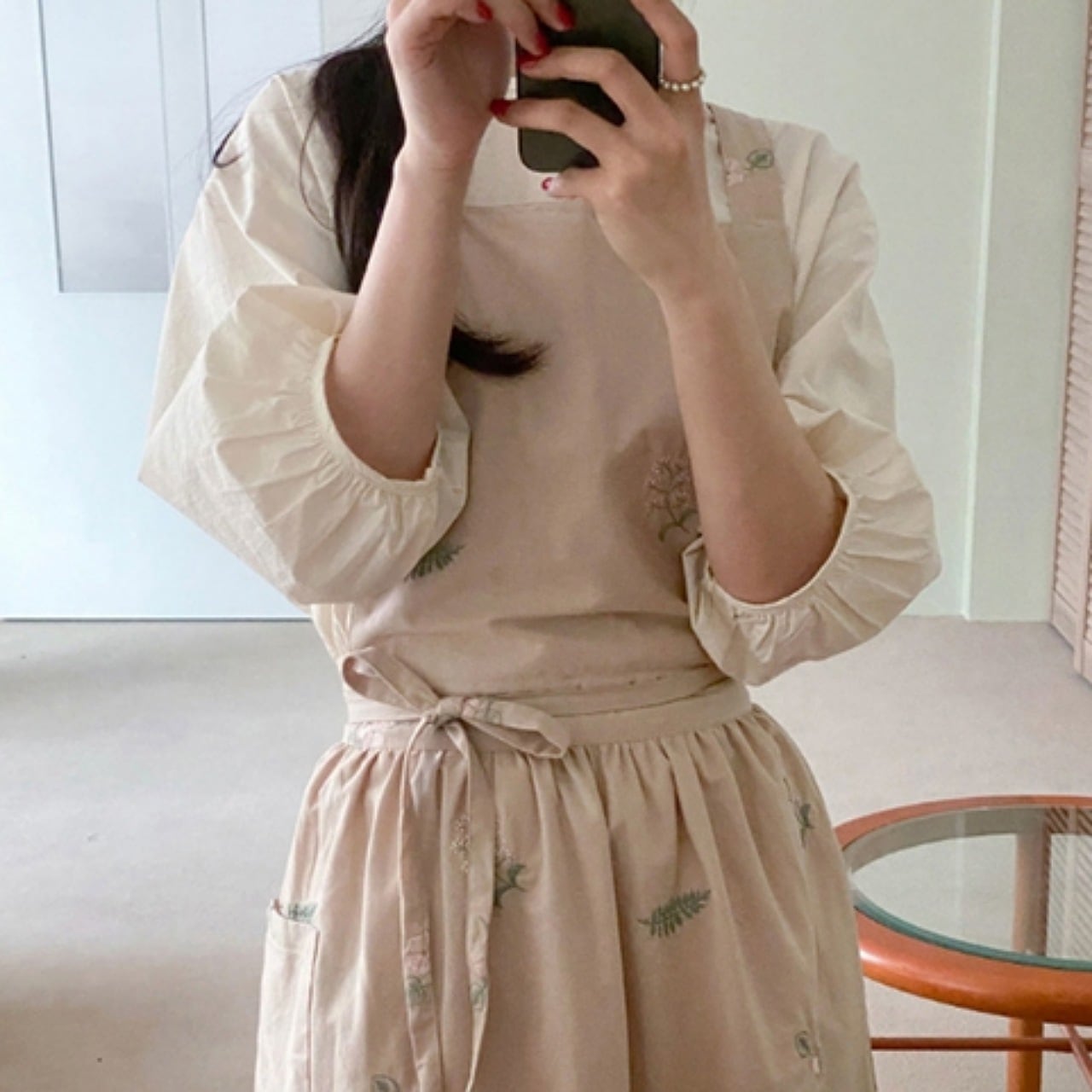 【ワンサイズ】フラワー刺繍 ワンピースエプロン