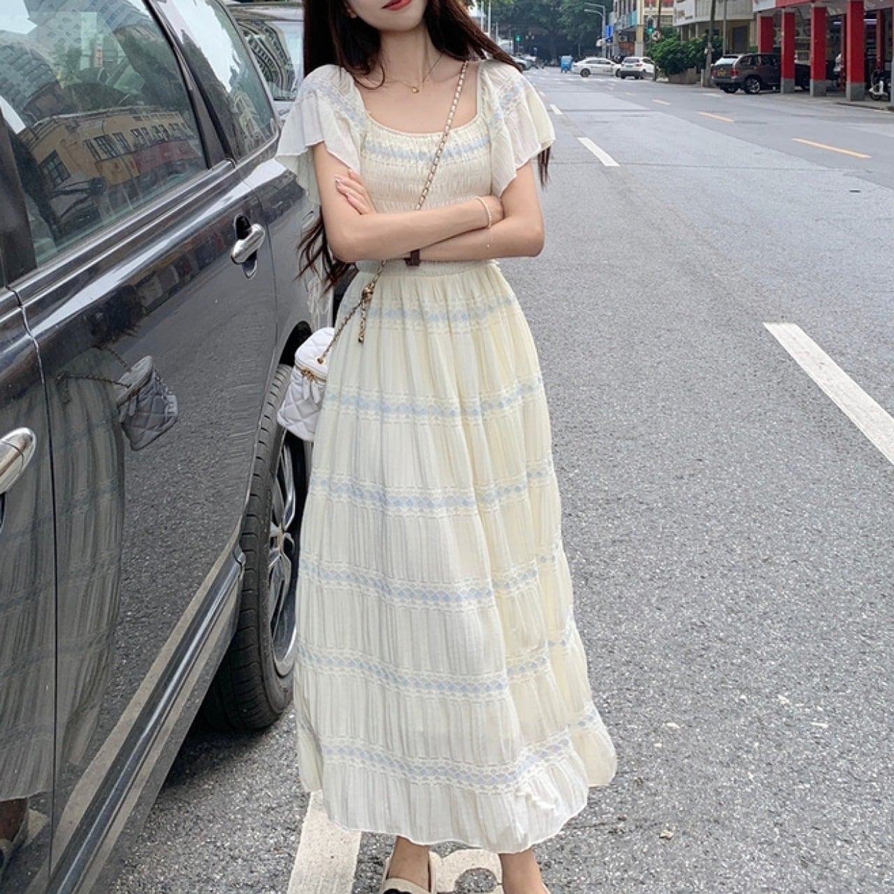 【S-XL】爽やかティアードワンピース