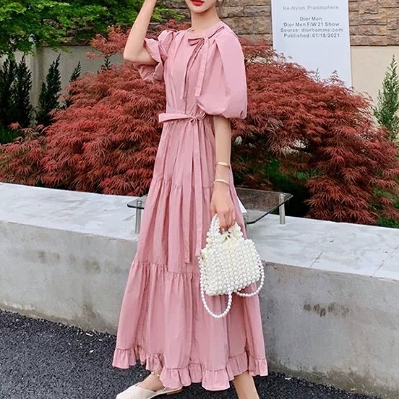 【S-XL】サイドスリット りぼんワンピース