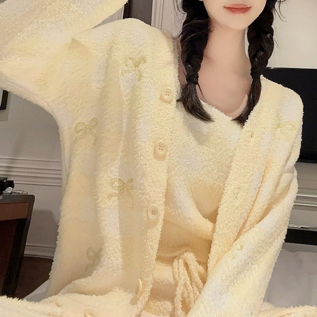 【ワンサイズ】《4色展開》刺繍りぼんルームウェア3点セット